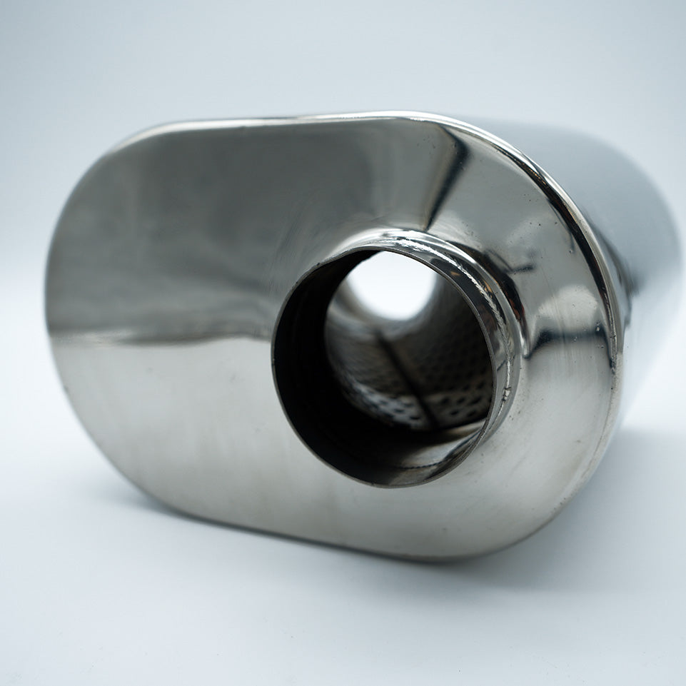 316 Stainless Universal Mini Oval Muffler, 2.5" inlet x 2.5" outlet